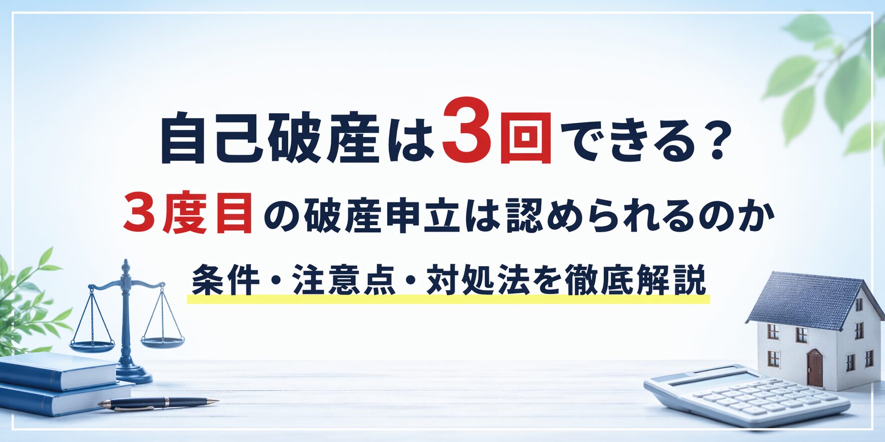 自己破産に法律上の回数制限はありません。しかし、3回目になると1回目・2回目より審査が厳しくなりやすいのは事実です。